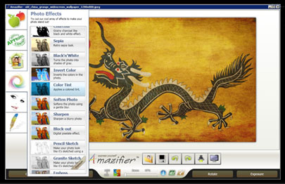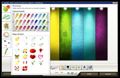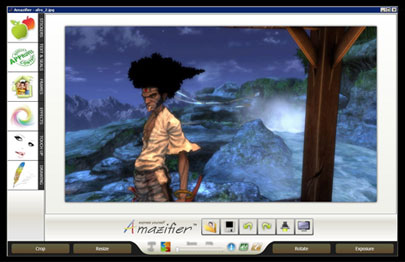 Khi lựa chọn chỉnh sửa ảnh, Amazifier cung cấp khung chỉnh sửa được bố trí đẹp mắt và rất chuyên nghiệp. Chính giữa màn hình là bức ảnh cần can thiệp, còn các công cụ được sắp xếp gọn gàng bên cạnh.