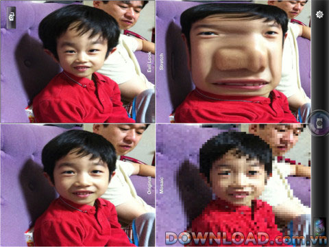 Hiệu ứng độc đáo như: Evil Look, Mosaic, Stretch, Mirror Left/Right, Mirror Up/Down, Mirror Four-way, Spiral, Wave1, Wave2, Squeeze, ConvexLens, ConcaveLens (12 hiệu ứng).